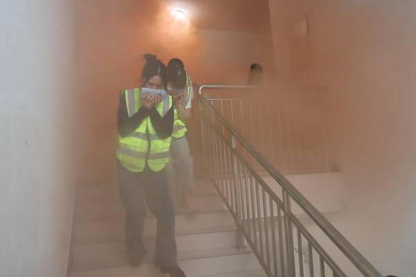 隨后進(jìn)入應(yīng)急疏散演練環(huán)節(jié),一名員工發(fā)現(xiàn)火情,立即上報(bào)并啟動應(yīng)急響應(yīng)。員工們迅速行動,用濕毛巾捂住口鼻,按照緊急疏散標(biāo)識安全、有序的進(jìn)行緊急撤離。在演練過程中,員工們展現(xiàn)了較高的自救互救意識和團(tuán)隊(duì)協(xié)作能力,確保了演練順利進(jìn)行。