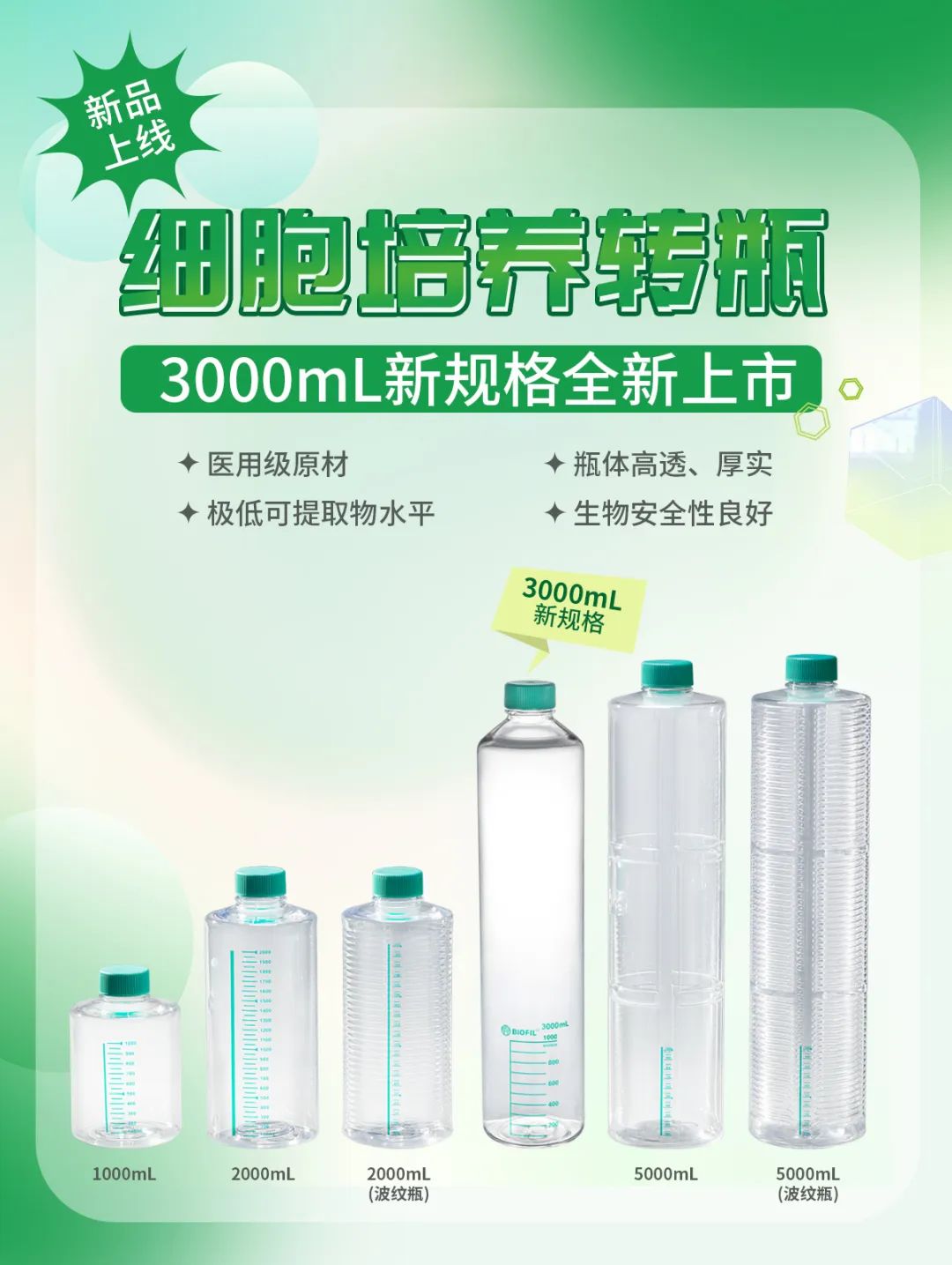 那是以前?。?!現(xiàn)在潔特生物新推出了3000mL細胞培養(yǎng)轉瓶!是用醫(yī)用級PS原料制成的哦!快來跟我看看吧~