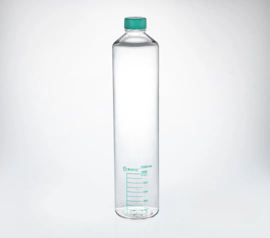 潔特生物新品3000mL細胞培養(yǎng)轉瓶采用符合USP Class VI標準的醫(yī)用級PS原料制成。其瓶體厚實,相比于傳統(tǒng)玻璃轉瓶更輕便,且抗跌落性更強,不易破碎,在配合自動化設備時更為靈活、安全。具有極低的可提取物水平以及良好的生物安全性,可滿足實驗室細胞培養(yǎng)以及生物工藝的線性放大需求,適用于重組蛋白、單克隆抗體、病毒性疫苗等領域的研發(fā)和生產(chǎn)。