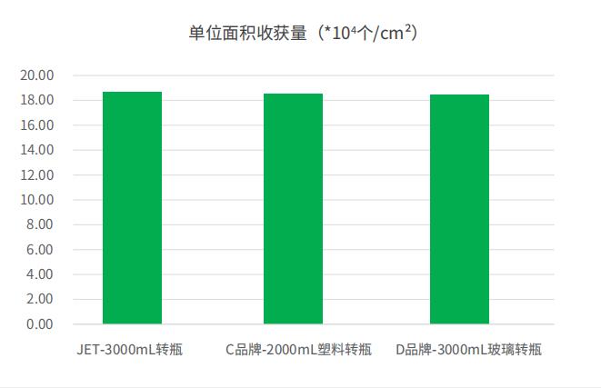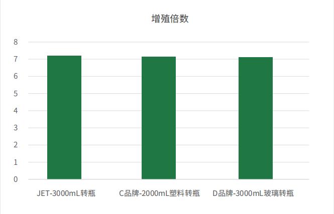 結果表明:在潔特生物3000mL細胞培養(yǎng)轉瓶中培養(yǎng)的Vero細胞單位面積收獲量和增殖倍數(shù)與國際知名品牌相當。