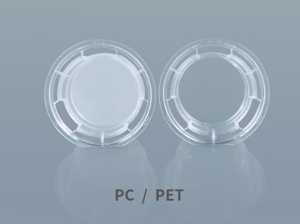 潔特生物細胞嵌入皿提供兩種高品質(zhì)膜材選擇,分別為PET膜與PC膜,二者均具備標準化的額定孔密度,可滿足不同實驗需求。
