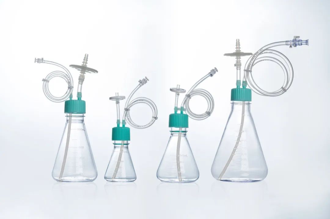在生物制品的工業(yè)生產(chǎn)中,降低液體轉(zhuǎn)移、取樣等過程潛在的污染風險至關(guān)重要,三角培養(yǎng)搖瓶搭配無菌轉(zhuǎn)移蓋及管路系統(tǒng),即可避免開放式操作帶來的污染問題。