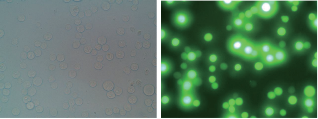 將4.0×106個/mL密度的HEK293細胞接種至ProGro™ 293 SFM,使用ProGro™ 293 TR 293細胞轉(zhuǎn)染試劑,轉(zhuǎn)染GFP基因質(zhì)粒,轉(zhuǎn)染48h后觀察細胞的轉(zhuǎn)染情況,轉(zhuǎn)染效率可達70-80%。