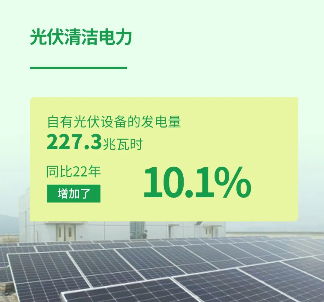 通過興建自有光伏發(fā)電設備機組,潔特生物在自身運營中持續(xù)引入可再生清潔能源。企業(yè)自有光伏設備2023年全年總發(fā)電量達227.3兆瓦時,相比2022年的206.5兆瓦時,同比增長10.1%。光伏電力的使用使企業(yè)生產(chǎn)辦公減少了對傳統(tǒng)能源的依賴。
