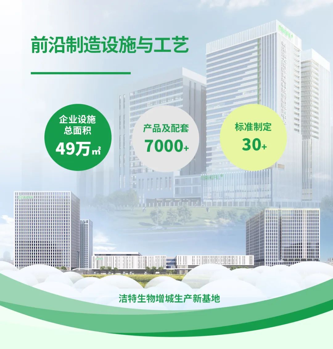 先進的生產(chǎn)設施與生產(chǎn)工藝是踐行可持續(xù)發(fā)展理念與措施的前提條件。20多年來,潔特生物致力于成為提供生物實驗室整體解決方案的高新技術企業(yè),始終聚焦產(chǎn)業(yè)升級。目前,企業(yè)著力打造的行業(yè)頂尖的智能制造及倉儲一體化生產(chǎn)基地,廣州黃埔總部設施總面積達16萬㎡,其中GMP級潔凈車間6.5萬㎡;增城新基地規(guī)劃占地面積達5.6萬㎡,總建筑面積33萬㎡,項目設計總產(chǎn)值40億元,已于今年逐步投入使用。