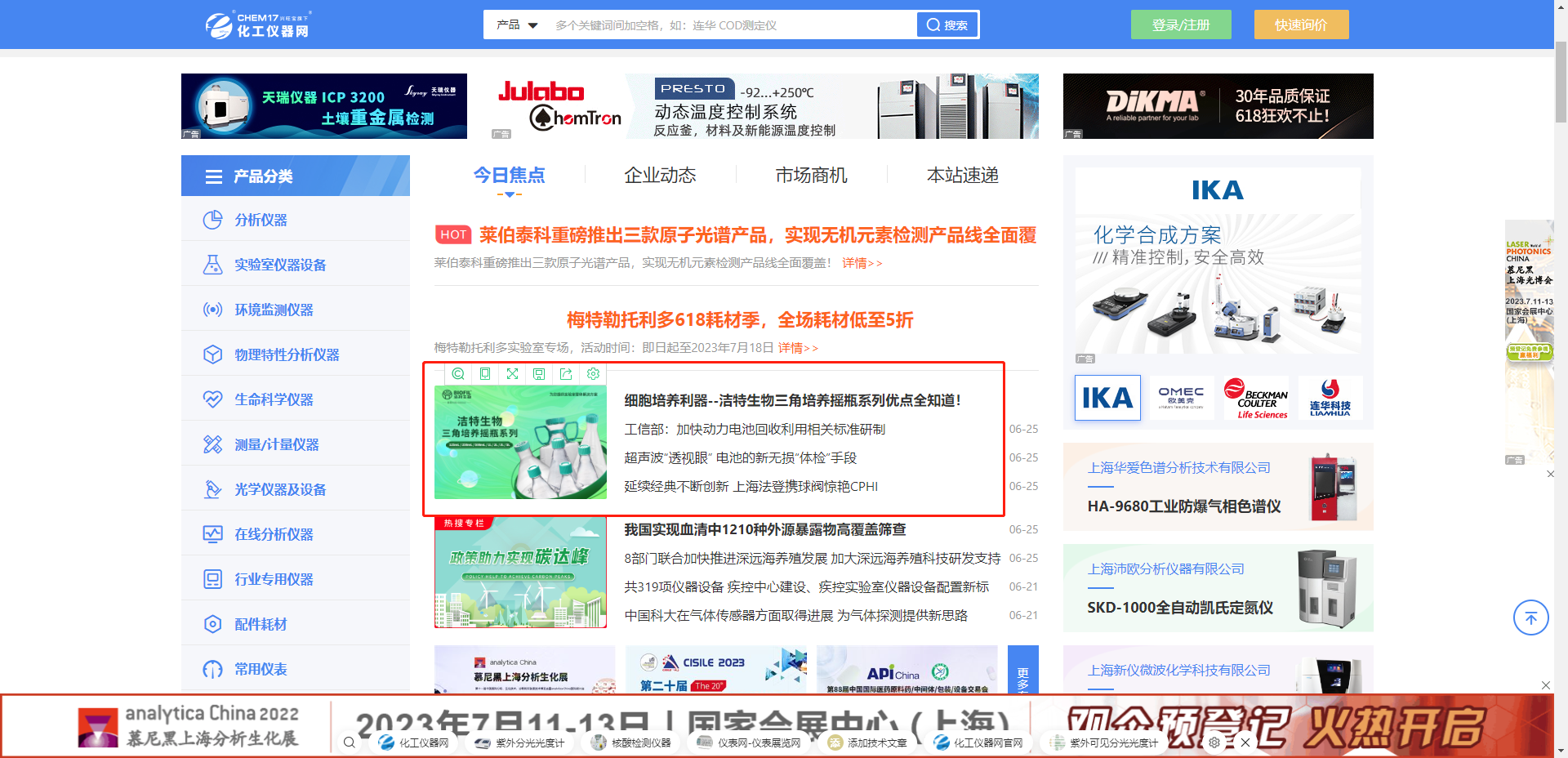 除了線上媒體推廣及感恩回饋活動,潔特生物還積極參加線下各類行業(yè)展會,如7月11-13日第十一屆慕尼黑上海分析生化展,7月5-7日2023年日本生物技術(shù)、制藥及實驗室展,7月5-7日2023年南非國際實驗室、分析、診斷及生物技術(shù)專業(yè)博覽會等。
